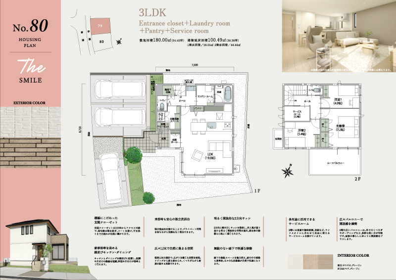 - 180㎡ (54.45坪) 〜 180.21㎡ (54.51坪)