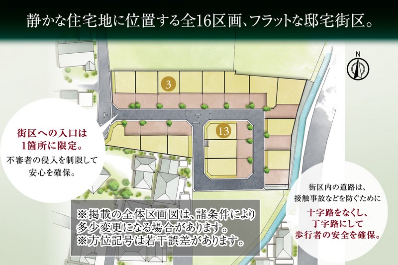 軽快につながる、利便を愉しむ、日常へ。静かな住宅地に位置する全16区画、トヨタホームの街