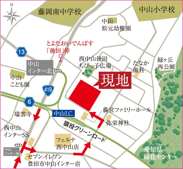 - とよたおいでんバス「後田」停まで約230m(徒歩3分)~約415m(徒歩6分)