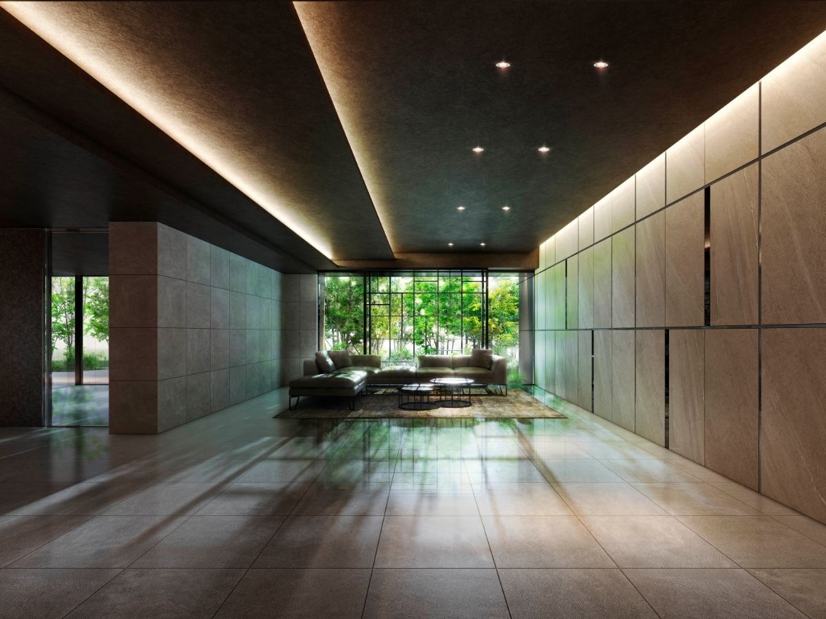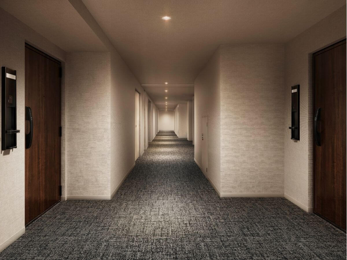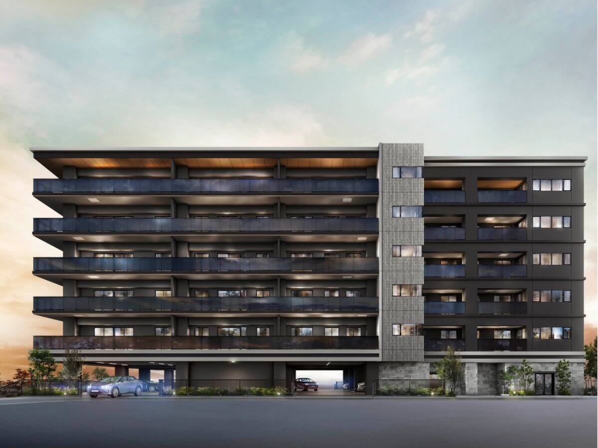総55戸・6階建ての低層レジデンス。全11タイプの多彩なプラン×ホテルライクな内廊下設計。平面駐車場100%完備。