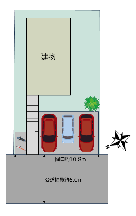 - 西側公道幅員約6.0mに約10.8m接道