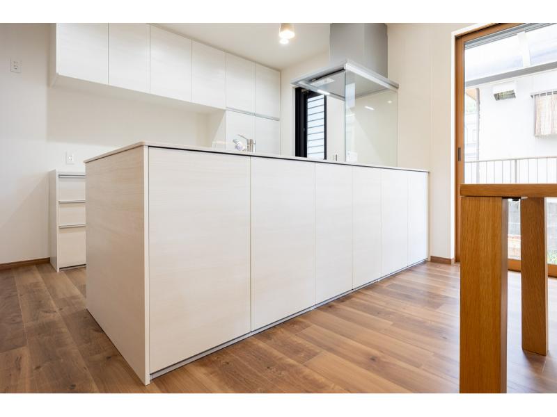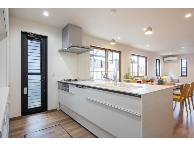 ・ワイドオープンタイプのキッチンと家事がしやすい洗面室への2Way家事動線