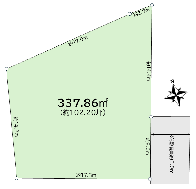 - 東側公道 幅員 約 5.0mに約 8.0m接道