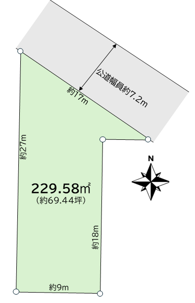 - 北東側公道 幅員 約 7.2mに約 17.0m接道