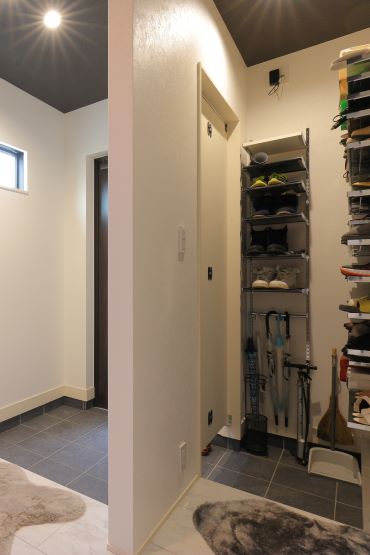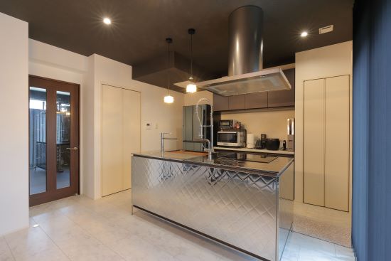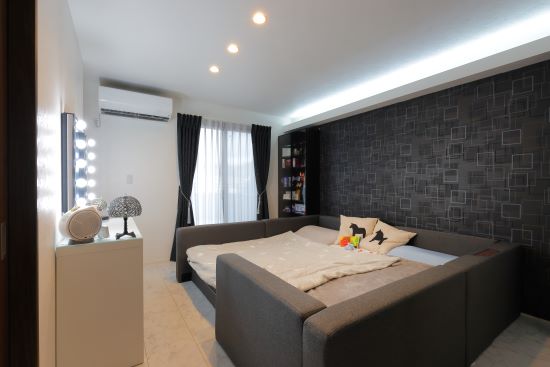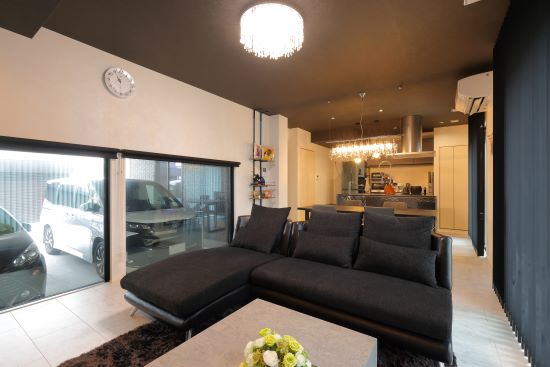2階建|延床約51坪|敷地約124坪 ユニット工法だから叶った大開口のインナーガレージ 車2台を並べてもゆとりある設計はトヨタホームならでは LDKからインナーガレージに並ぶ愛車が眺められます 1.大開口のインナーガレージ 2.愛車を眺められるリビング 3.クール&ラグジュアリーなデザイン 家族構成/ご主人、奥さま、お子様 建 物/シンセ・スマートステージ 敷地面積/411.97㎡(124.62坪) 建物面積/1階:103.42㎡ 2階:65.41㎡ 延床面積/168.83㎡(51.07坪) 理想の暮らしを叶える土地探しからスタート 車2台分のインナーガレージとトレーニングルーム、さらにLDKから愛車を眺めたいという夢を叶えるためには、土地の広さや立地条件が重要。土地代を抑えられる郊外も含めリサーチしました。接道する北側にインナーガレージ、南側にリビングを配置できる土地の条件と広さがうまく合致し、愛車を眺められるリビングも実現できました。 2階のプライベートエリアもデザイン性の高い空間に! お客様の目に触れるLDKだけでなくプライベートな寝室や ランドリールーム、浴室も一貫してモノトーンでまとめられた クール&ラグジュアリーな雰囲気。もちろん、デザイン性に加えて 居心地や使い勝手の良さもしっかりと考えられています。 玄関ホールに設置した洗面台。 ガレージからもアクセスしやすい よう動線を整えました。 お客様用の玄関と、インナーガレージ につながるプライベートな玄関を 分けられるよう壁を設けました。 お客様も使う1階のトイレは、 LDKの雰囲気ともマッチする ラグジュアリーな雰囲気に。 キーワード モダン外観 自然や庭を楽しむ 車と楽しむ 面積 45坪以上