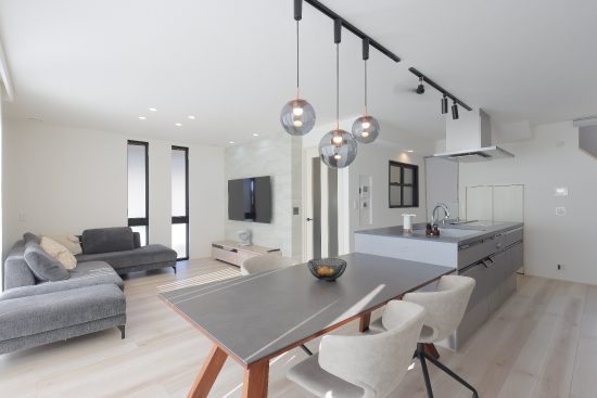 これまで暮らしていたご実家の敷地内に新居を建てることになったI様。お子さまは現在4歳と1歳。2人のお子さまの成長を見守りながら、そのライフスタイルの変化を見据えたマイホームを計画されました。ご夫婦ともに料理好きで、LDKの広さとキッチンにもこだわり、将来、お子さまと一緒に料理をするのが今からの楽しみだそうです。