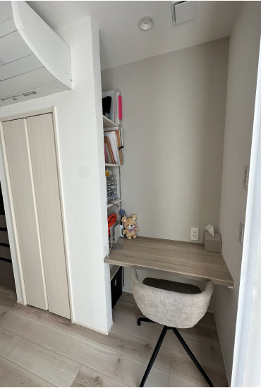 プライベート空間が集まる2階は、暮らしを楽しむ工夫があちこちにあります。2つ並んだ洋室は、姉妹の個室です。今は間の壁をなくして大きなこども部屋にしています。シンプルな内装には、成長したお子さまたちがそれぞれの好きな空間を整える楽しみがあります。また、階段ホールに窓を設置したことで、明るい光が降り注ぎ、階段を降りた先にあるキッチンにまで光を届けてくれます。料理好きなご夫婦は、この明るいキッチンで、成長したお子さまたちと一緒にお菓子作りをすることを今から楽しみしているそうです。これから先も、I様家族の笑顔の絶えない暮らしが、ずっと続いていくでしょう。