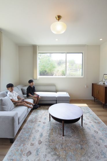 リビング南側の窓は、街路樹が風に揺れる風景が窓によって切り取られ、まるで風景画のよう