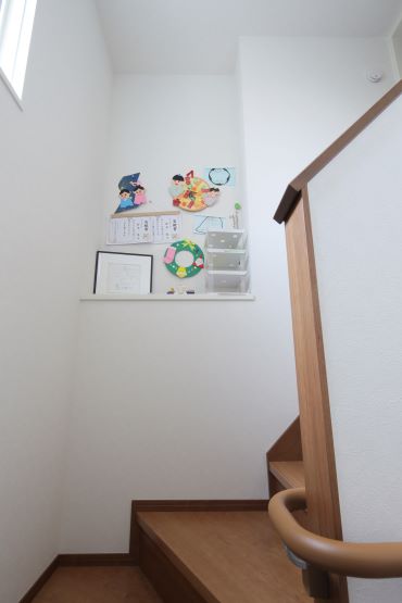 階段のデッドスペースにマグネットウォールを採用。子どもの作品や写真を飾る大切な場所です。