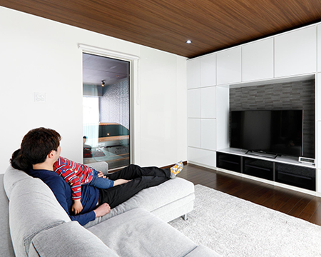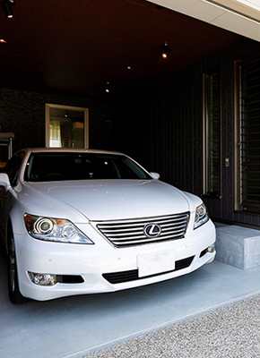 車好きなら誰でも憧れるインナーガレージ、そして書斎。ご主人の夢を詰め込みつつ、しかし一番大切にしたのは「家族が自然に集まるリビング」づくり。お子さまたちが成長した後も、気づけばリビングでみんなが過ごしている。それを実現するためのアイデアをいろいろ盛り込みました。