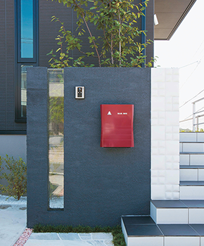 門柱や表札も住まいの外観に合わせて、スタイリッシュにコーディネート。