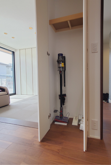 動線上で出来てしまったデッドスペースを掃除道具の収納に。扉を閉めて見た目もすっきり!
