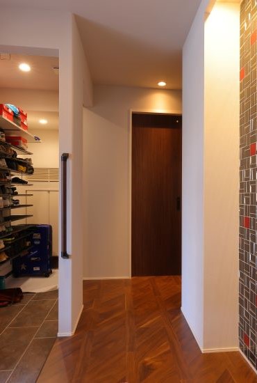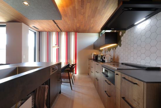 2階建|延床約42坪|敷地約41坪 建材へのこだわりが大成功! アイデアをカタチにする プロのアドバイスを受けながら 希望と理想をすべて実現させました 1.暮らしのシーンを想定した間取り 2.開放感とプライベート感を両立したリビング 3.個性あふれるオシャレなデザイン 家族構成/ご主人、奥さま、お子様2名 建 物/シンセ・スマートステージ 敷地面積/136.54㎡(41.30坪) 建物面積/1階:75.18㎡ 2階:66.75㎡ 延床面積/ 141.93㎡(42.93坪) 暮らしのシーンを想定して部屋の広さや間取りを決定 1階はインナーガレージにスペースを割き、リビングは2階の日当たりの良い場所に。軒の深いハイウォールバルコニーで開放感とプライベート感を両立させました。 Ⅱ型のアイランドキッチンは料理中でも、ご主人やお子様がキッチンに立ち入れるような動線を考えました。 それぞれの部屋は個性全開!共用部はオシャレでセンスあり ご主人の部屋はインナーガレージに隣接し、車を眺めながら集中して仕事ができる空間に。奥様の部屋は、ボタニカルなデザインと利便性の高い機能的な収納を組み合わせました。インパクトの強い色や素材を使っていても、全体を見た時に突出せず、まとまった印象を与えます。 キッチンからパントリーへの開口部とスイッチコーナー。オリーブ色と三角屋根がかわいらしい印象に。 趣味の裁縫を楽しむ、奥様のお部屋。休日には、ここでご自身やお子様の洋服などを作っています。 土間のタイル、廊下のフローリング材ともに、こだわりの詰まった玄関。大容量の土間収納も備えます。 キーワード モダン外観 家事ラク動線 車と楽しむ 面積 40〜45坪まで
