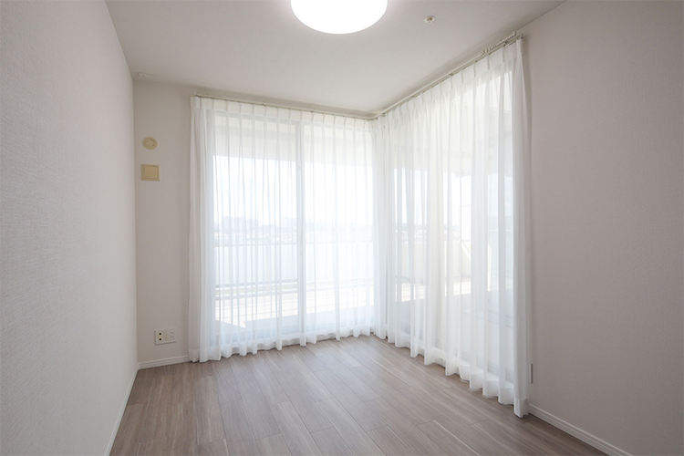 リビングとつながっていた和室は壁で遮り、独立した洋室へと変更。バルコニーに面したL字の窓からの光が部屋を明るくしてくれます。バルコニーへの出入口にもなる部屋のひとつ。
