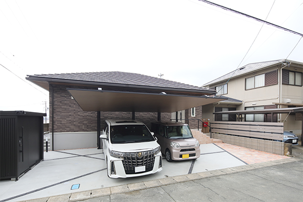 ご夫婦の念願が叶った平屋の注文住宅。駐車スペースも4台分確保。
