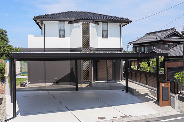 当時のトレンドを踏襲したトヨタホームの注文住宅シリーズ「オーク」の面影が残る外観。1階・2階の外装が“バイカラー”になっているのが印象的です。