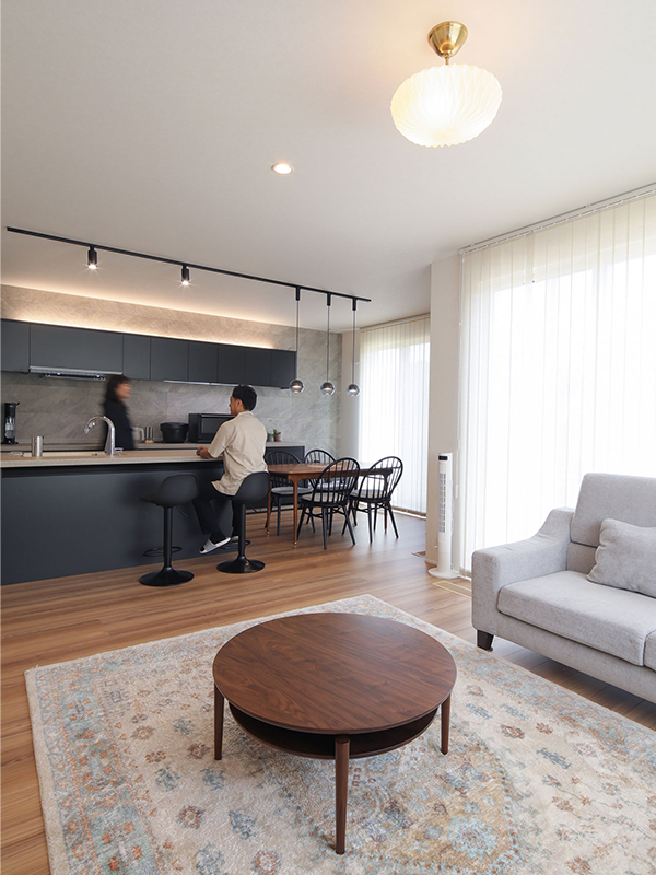 壁紙などの内装はもちろん、インテリアもほとんどを買い換えてこだわったリビング。クリーンな配色でまとめられたナチュラルな雰囲気から居心地が良さが伝わります。