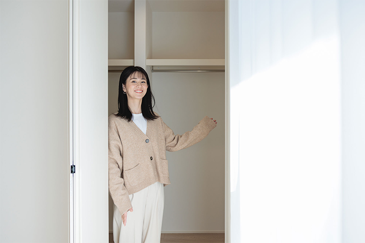 主寝室のウォークインクローゼットは、想像以上の大容量。