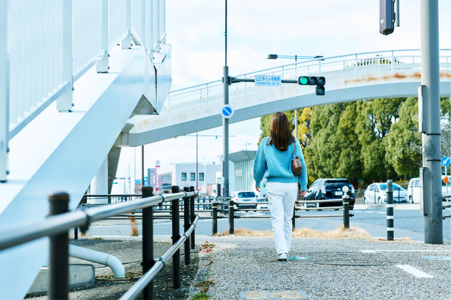 「山之手小学校南東」の交差点は交通量が多いですが、歩道橋があるので安全。