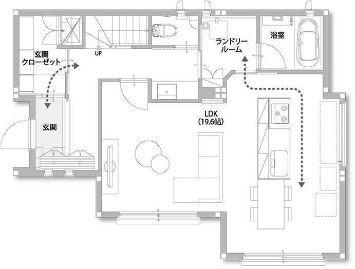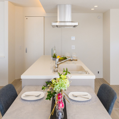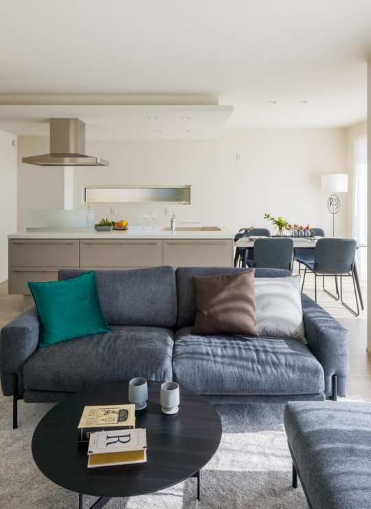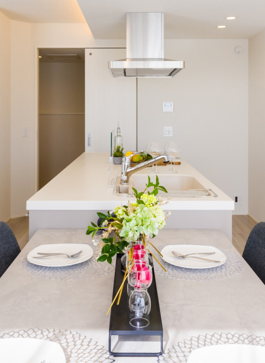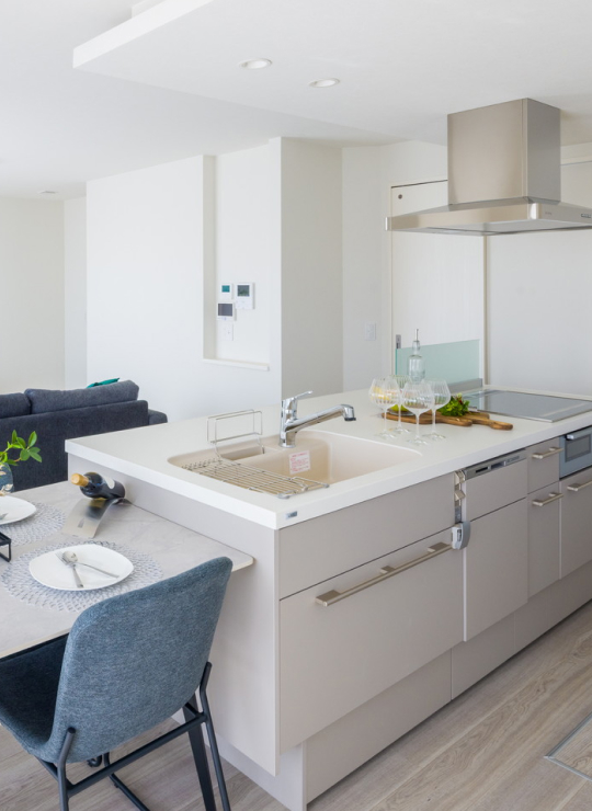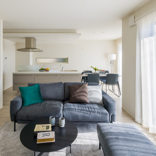 美しさと機能性を兼ね備えたスマートな住まい。吹き抜けから差し込む光が創る開放的な空間、家事をラクにする設備の数々、そして快適な室内環境を実現する全館空調システム。細部まで行き届いた設計と確かな品質で、毎日の暮らしに歓びをもたらします。