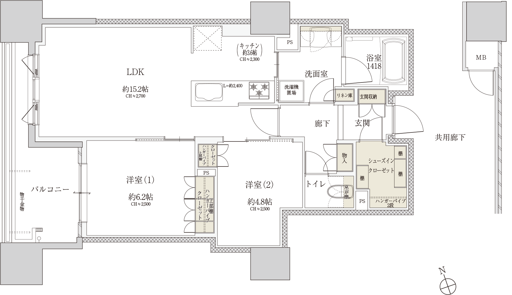 ※方位記号は若干誤差があります。正確な方位については設計図書でご確認ください。