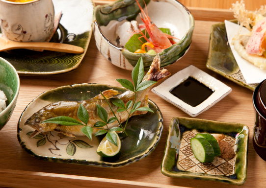 四季を感じる日本料理、魚介や野菜など旬の素材のおいしさを十二分に生かした匠の技を駆使し、絶品料理に仕上げています。