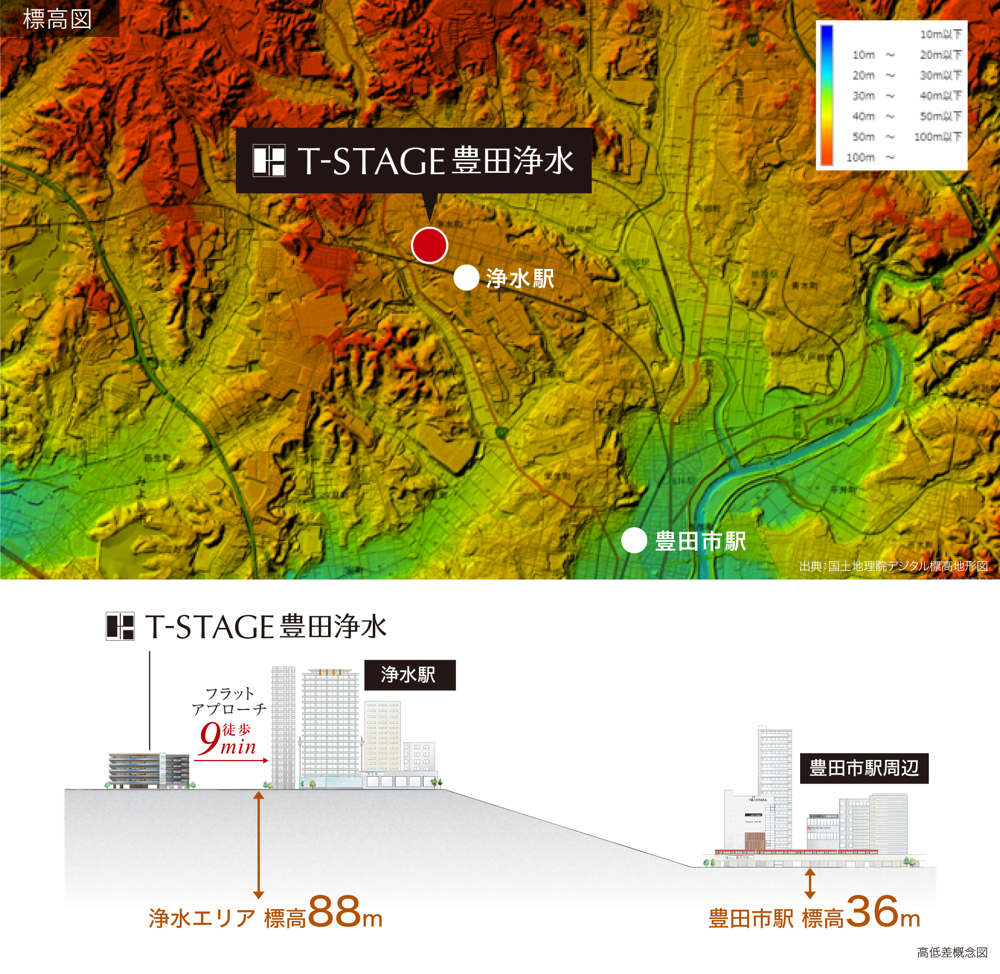 Tステージ豊田浄水は標高約88m超の